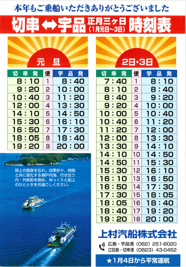 広島(宇品港)と江田島(切串港)を結ぶ最短フェリーです。